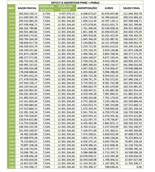 Art. 4º O Poder Executivo Municipal, a fim de alcançar o equilíbrio atuarial, realizará a amortização do déficit técnico atuarial em 43 (quarenta e três) anos, conforme projeção de amortização da avaliação atuarial realizada por atuário, constante no Anexo Único desta Lei.